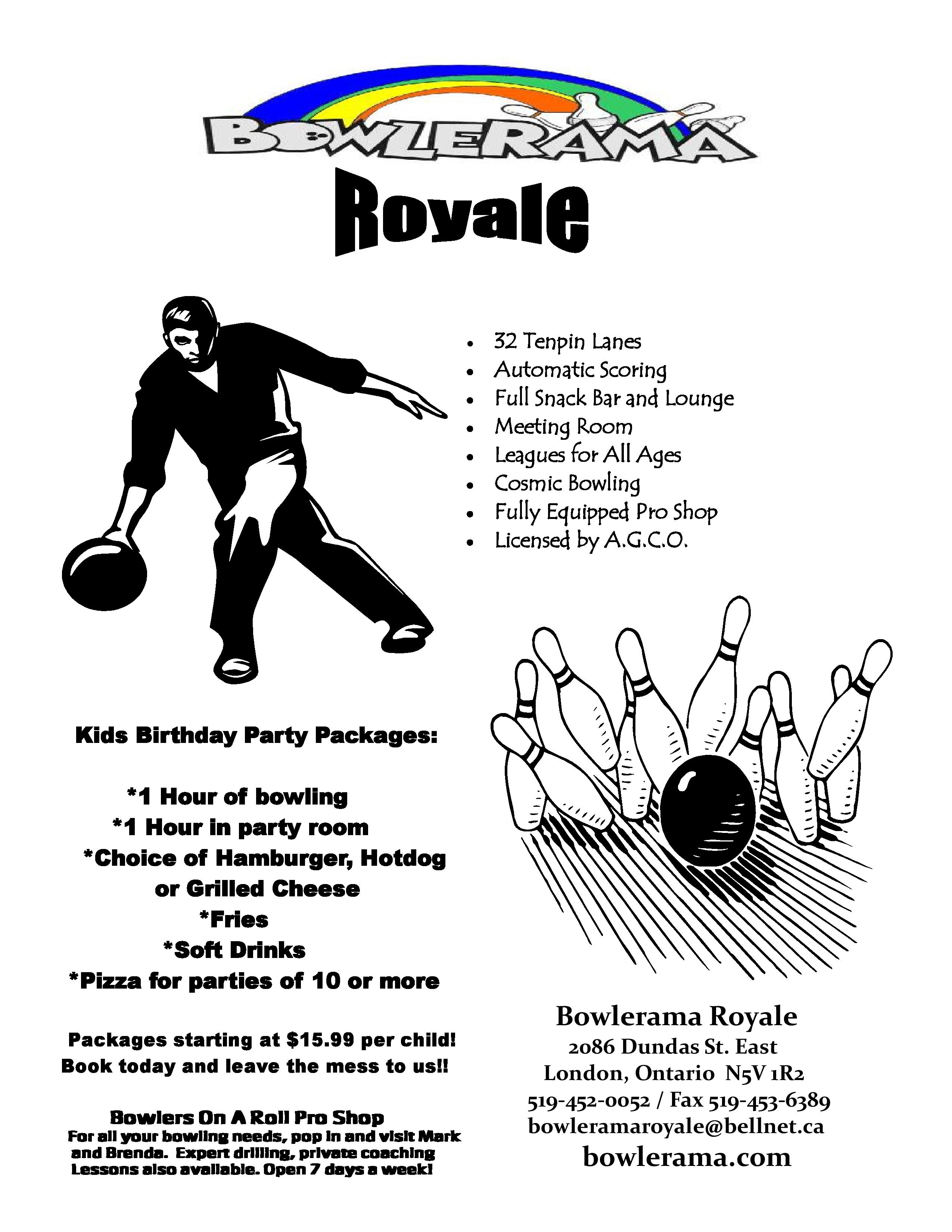 Thanks to our Sponsor…. BOWLERAMA ROYALE Published August 6, 2015 at 2550 × 3300 in Thanks to our Sponsor…. BOWLERAMA ROYALE Recommended for all your bowling, party and fundraiser needs!