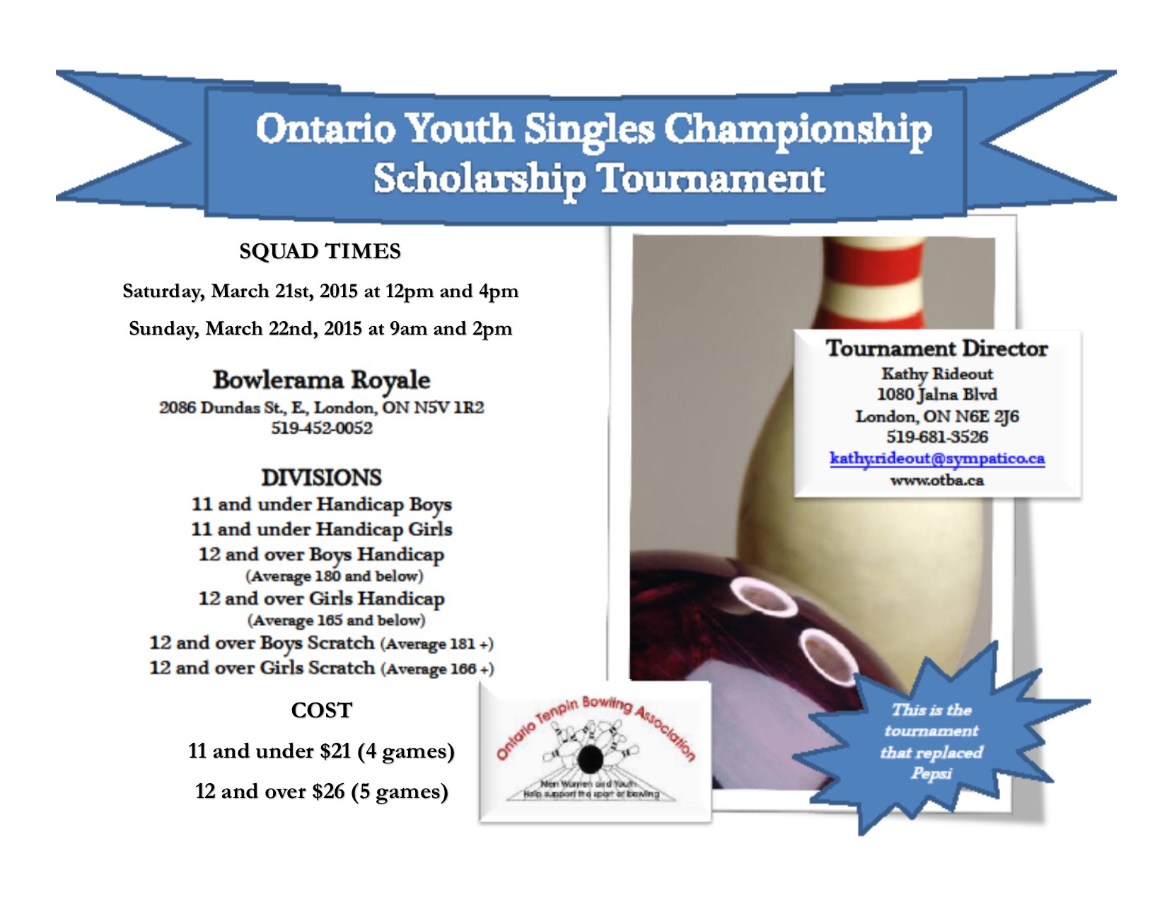 On March 21 and 22nd, 2015 the 2015 Ontario Youth Singles Championships were held at Bowlerama Royale in London.