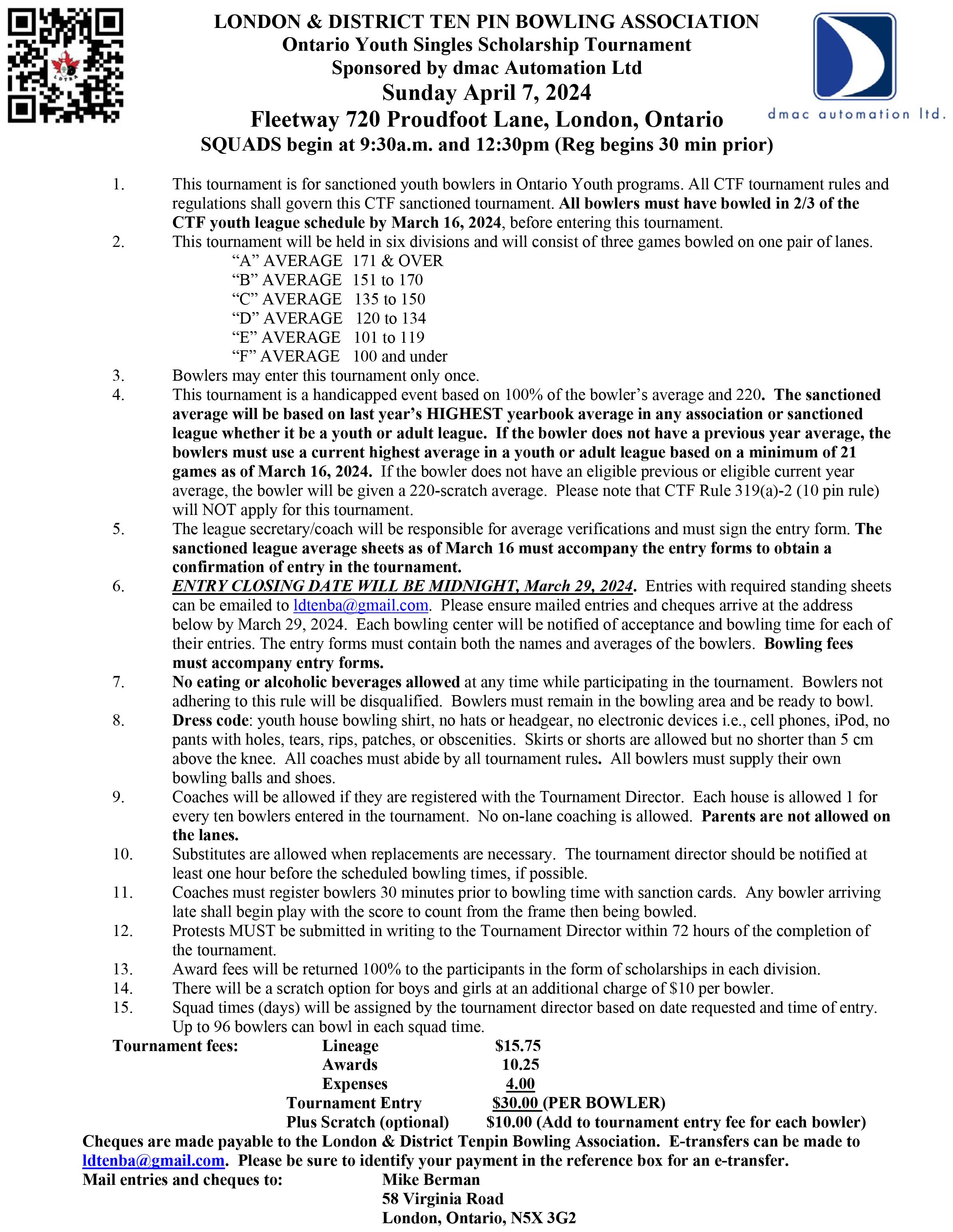 LDTBA Ontario Youth Singles Scholarship Tournament 2024 Posted on February 25, 2024 by ladtpba Entry Form