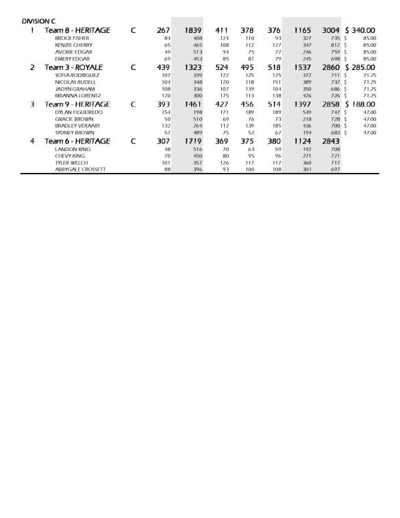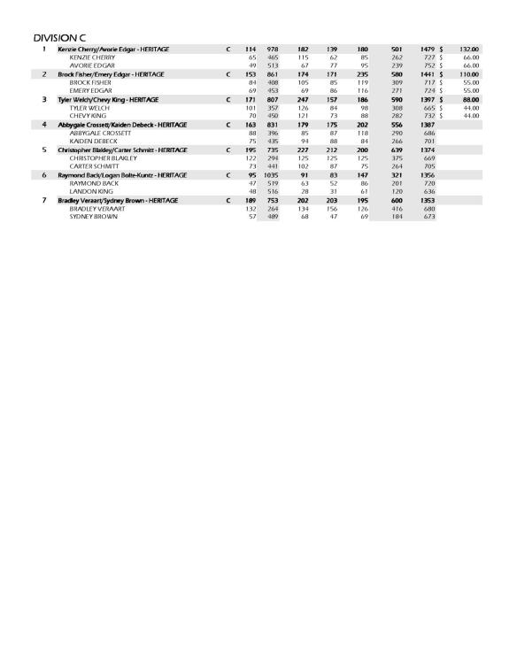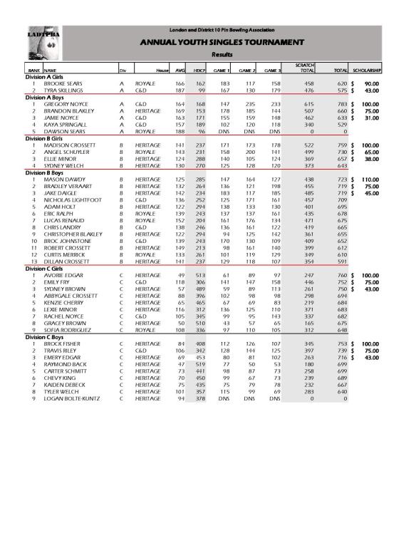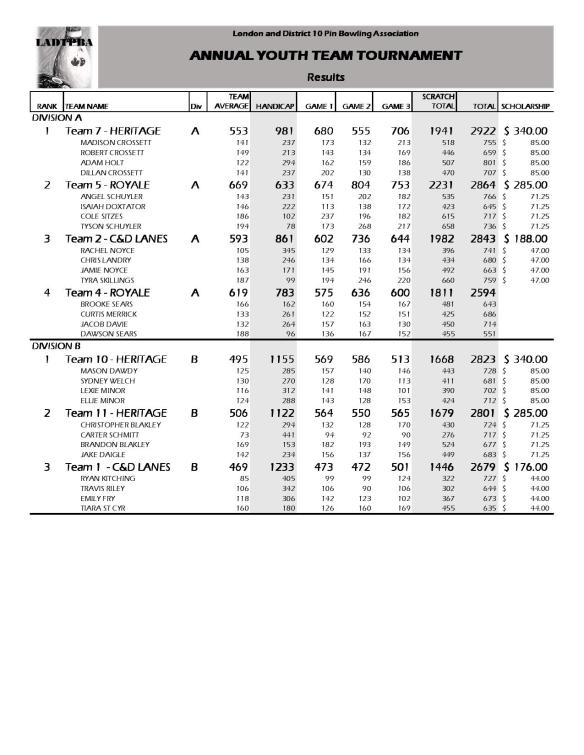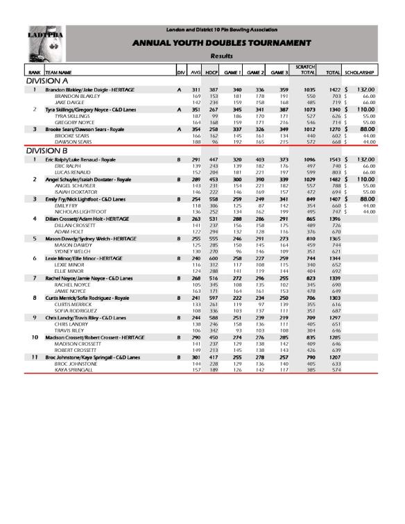 L&D Youth Doubles, Singles, Teams, and All Events Results