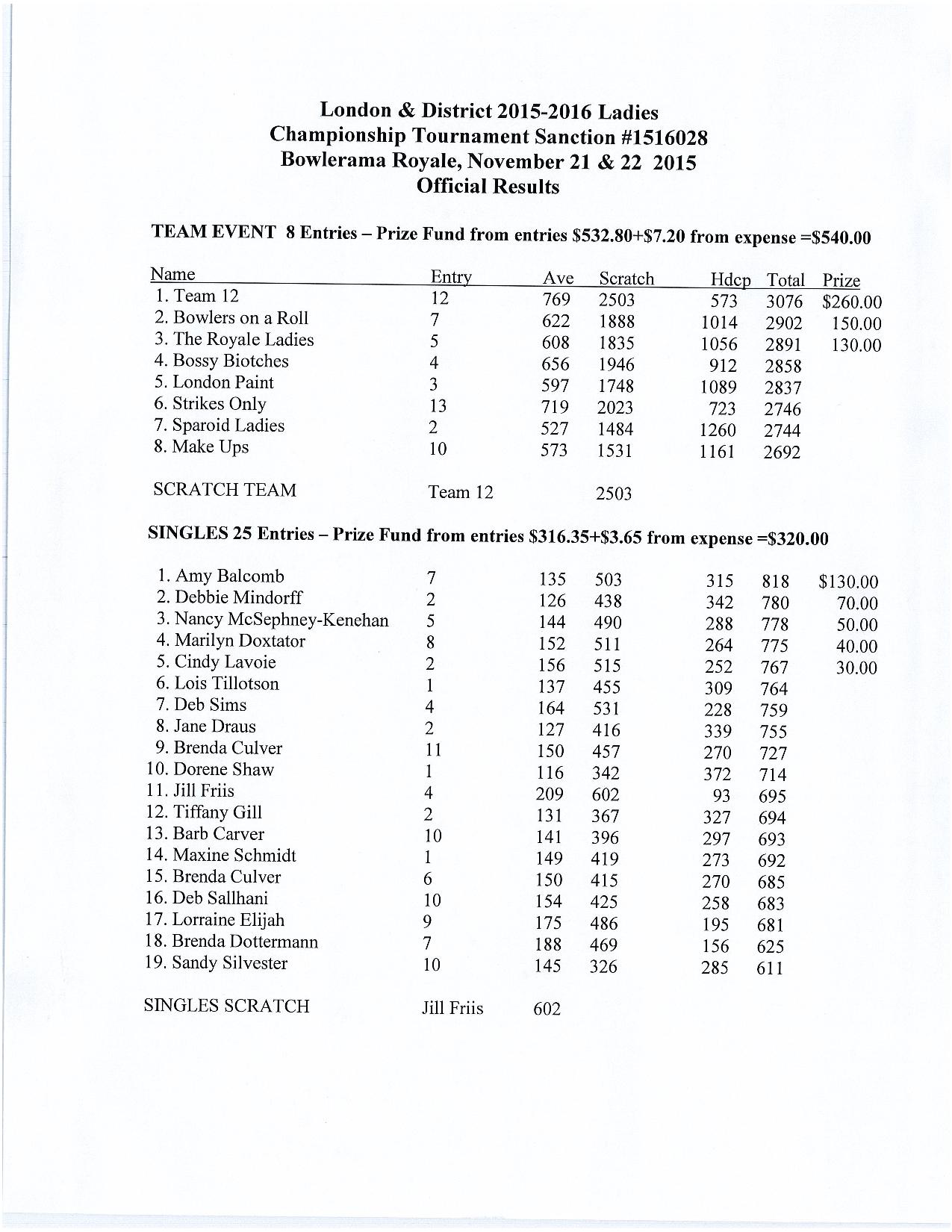L&D 2015-2016 Ladies’ Championship RESULTS