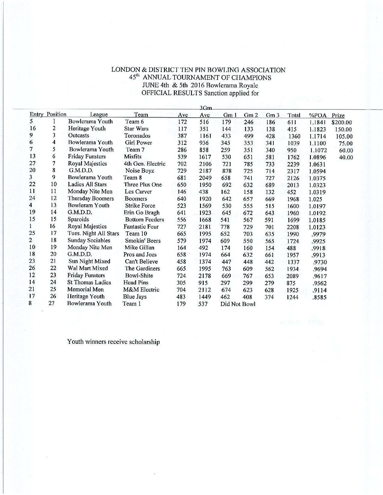 To print a copy click here >>>> 2016 Tournament of Champions RESULTS
